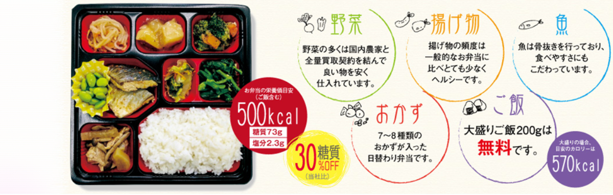 糖尿病・腎臓病・透析治療中の方向けのお弁当や嚥下が困難な方向けのムース食のお弁当を毎日配達・宅配しております。